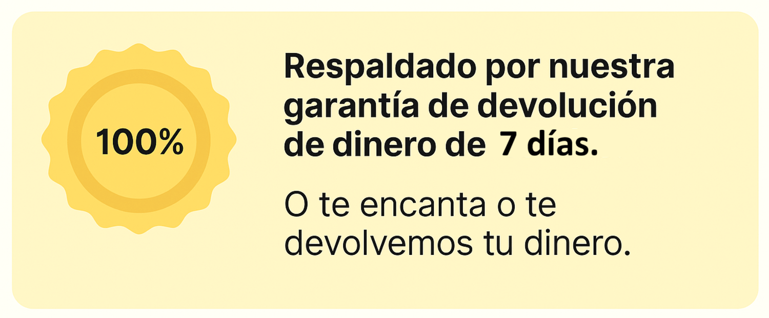 Y con gusto te devuelvo el 100% de tu inversión. Sin explicaciones forzadas. Sin formularios extraños. Sin interrogatorios.